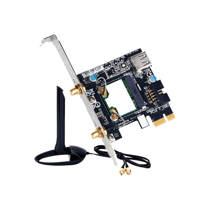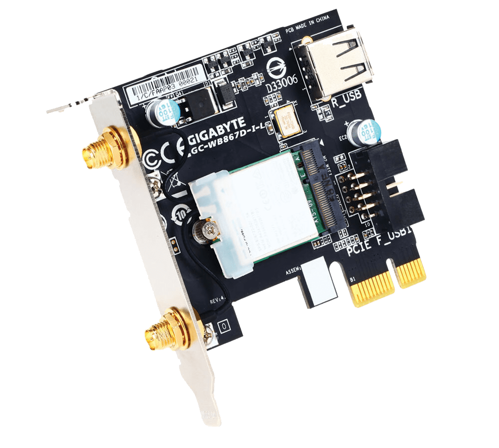 Cette carte réseau Gigabyte GC-WB1733D-I au format PCI-Express va vous permettre de profiter pleinement des connections sans fil Bluetooth 4.2 et Wi-Fi 802.11 AC.Elle est facile à installer et à configurer. Profiter enfin pleinement de vos périphériques sans-fil !