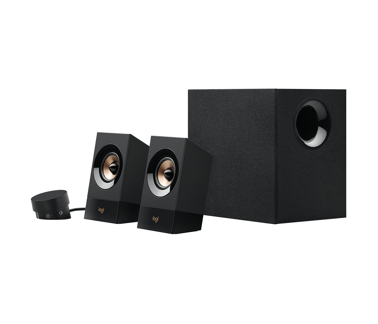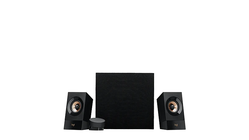 Un son puissant à portée de main avec un système de haut-parleurs 2.1, un boîtier de commande intégré et des connexions multiples pour un maximum de trois dispositifs. La puissance de crête de 120 watts et de 60 watts RMS offre un son puissant et des basses pleines pour remplir votre espace.